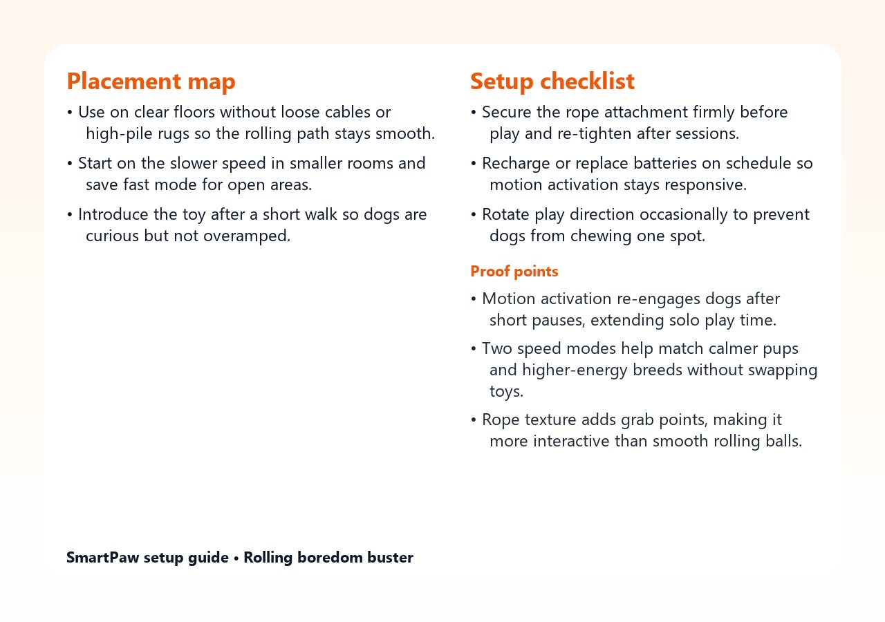 Motion-Activated Rolling Dog Toy with Rope and Two Speed Modes placement guide